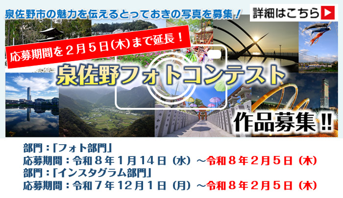 関西国際空港(写真提供:関西エアポート株式会社) りんくうタウンのマーブルビーチから関空を臨む 日根荘大木の里 コスモス園 恋人の聖地「LOVE RINKu/関空・大阪湾を望むりんくう公園」 日本遺産 中世日根荘の風景 関空へ伸びるスカイゲートブリッジR エエトコ!泉佐野 泉佐野市多言語情報サイト 松波キャベツを使った創作メニュー 2月8日は投票日!期日前投票所をご利用ください! 泉佐野フォトコンテスト受付延長! 物価高騰対策!さのぽ10,000ポイントを付与 さのぽ超プレミアムポイント還元祭 いずみさのSherpass 街ガチャ in 泉佐野市 設置場所増設中!! ここ旅 泉佐野(泉佐野市公式観光サイト) サイト内検索 ページID検索 ページID検索とは? もしものときに 防災情報 防災行政無線放送 WEB版ハザードマップ 各種相談 目的から探す 妊娠・出産 子育て 入園・入学 就職・退職 結婚・離婚 引っ越し 高齢・介護 おくやみ 必要な手続きを簡単に検索できます 手続き検索サイト お役立ち情報 市民課窓口混雑状況 施設マップ 泉佐野市例規集 地図情報システム 入札・契約情報 報道提供資料 暮らしの便利帳 ごみの分別と出し方 コミュニティバス 市民のひろば 部長のひとこと リンク 泉佐野市からのお知らせ 新着情報 トピックス 新着情報 現在、新着情報はございません。 新着情報一覧を見る RSS トピックス 第51回衆議院議員総選挙及び第27回最高裁判所裁判官国民審査、大阪府知事選挙 物価高騰対策としてさのぽ10,000ポイントを付与します さのぽ超プレミアムポイント還元祭 甘味茶房さのまち庵がオープンしました 「街ガチャin泉佐野市」について マーブルビーチモニュメントについて 第83期名人戦七番勝負第3局(泉佐野対局)でご提供した勝負めし等をご紹介します! 泉佐野市手続き検索サイトをご利用ください コミック『クロスバーストハニーハニー』のPR活動に泉佐野市が協力 泉佐野市出身のYouTuberマルコスさんがPR大使に就任! トピックス一覧を見る イベントカレンダー 年 月 日 月 火 水 木 金 土 イベント一覧を見る ピックアップ イヌナキン ハウス 行政情報番組 さのテレ! 泉佐野ポイントカード さのぽ 日本遺産 日根荘 いずみさの子育て応援なび 泉佐野市デジタルアーカイブ 毎日の給食 市公式単発お仕事探しサイト 泉佐野市について 市のプロフィール ようこそ市長室へ 泉佐野市議会 ふるさと納税 広報いずみさの 令和8年2月号 バックナンバー ページID検索 ページID検索とは? 公式SNS LINE X(旧Twitter) YouTube Instagram 人のうごき 2026年1月末日現在 人口一覧表 市内人口 99,627人 世帯数 51,519世帯 男 47,818人 女 51,809人 関連リンク ここ旅 泉佐野(泉佐野市観光サイト) 泉佐野市観光協会 関西国際空港 りんくう総合医療センター エブノ泉の森ホール 泉州タオル 泉佐野市紹介ポータルサイト MOTTO SANO 広告 広告募集について