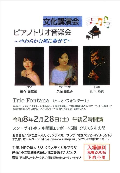 市民の為の文化講演会(ピアノトリオ音楽会~やわらかな風に乗せて~)