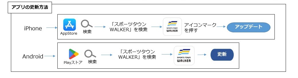- スポーツタウンWALKERアプリとスマートフォン本体の再起動