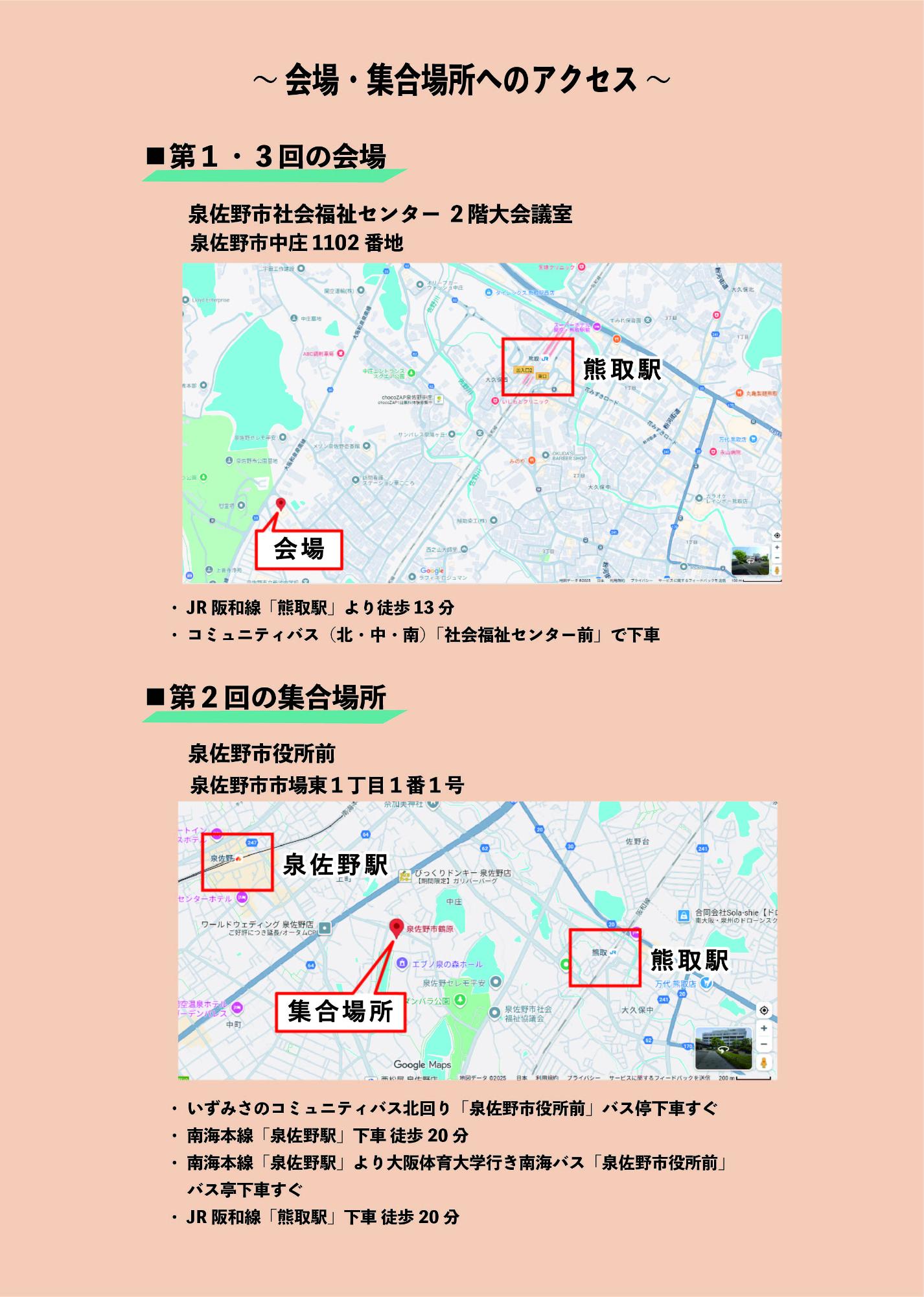 場所:1回目・3回目は泉佐野市社会福祉センター 2階大会議室(泉佐野市中庄1102 番地)