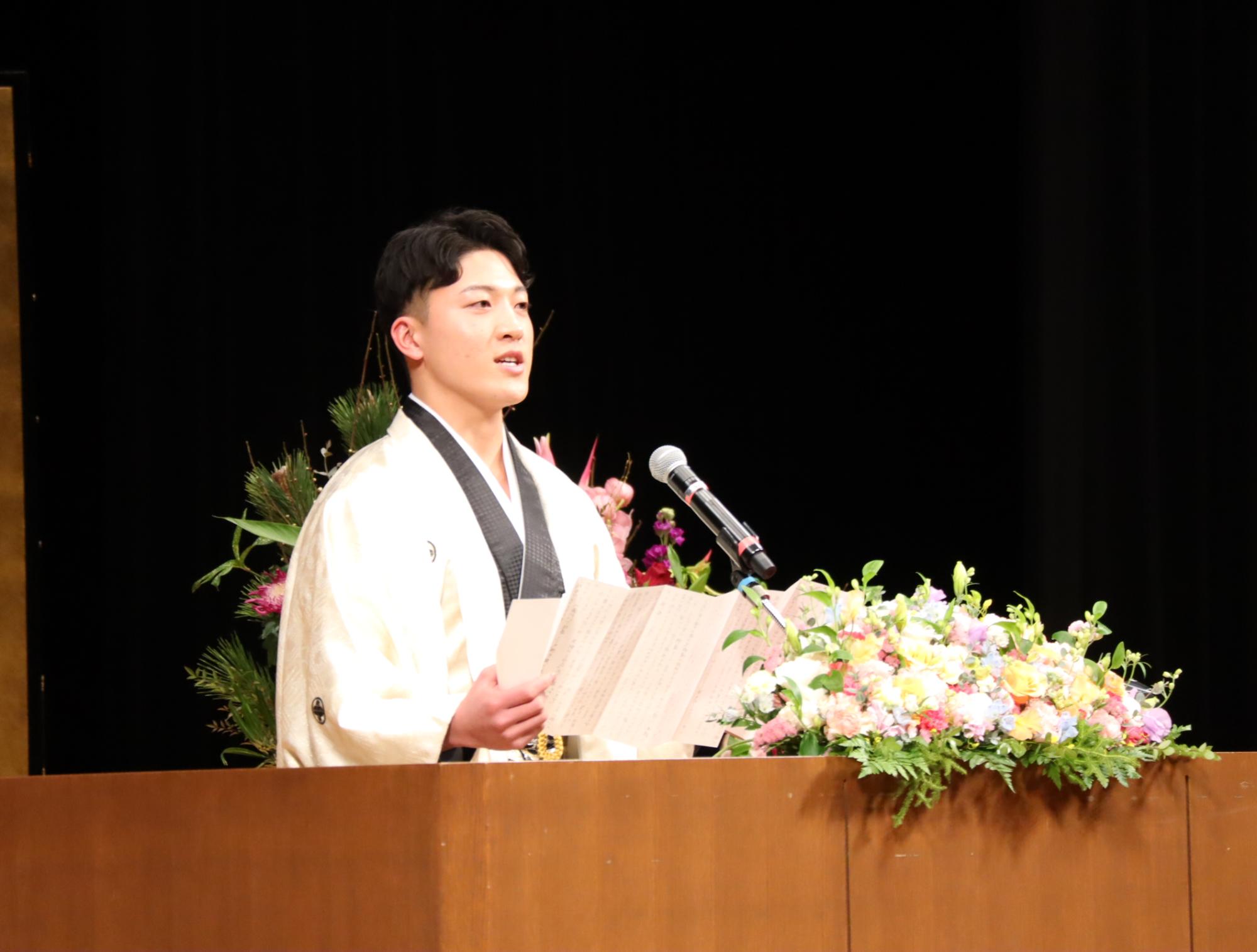 当日は天候にも恵まれ、男子387名・女子343名、本市成人式対象者の約7割にあたる730名の皆さまにご参加いただきました。