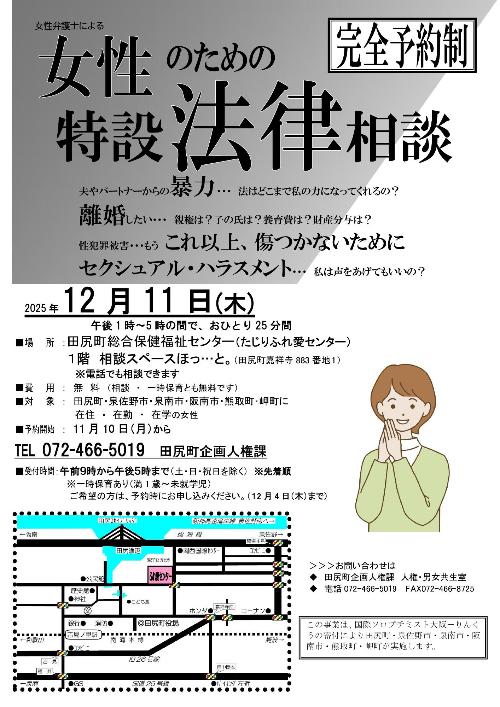 ●対象:泉佐野市、泉南市、熊取町、田尻町、阪南市、岬町に在住または在勤、在学の女性