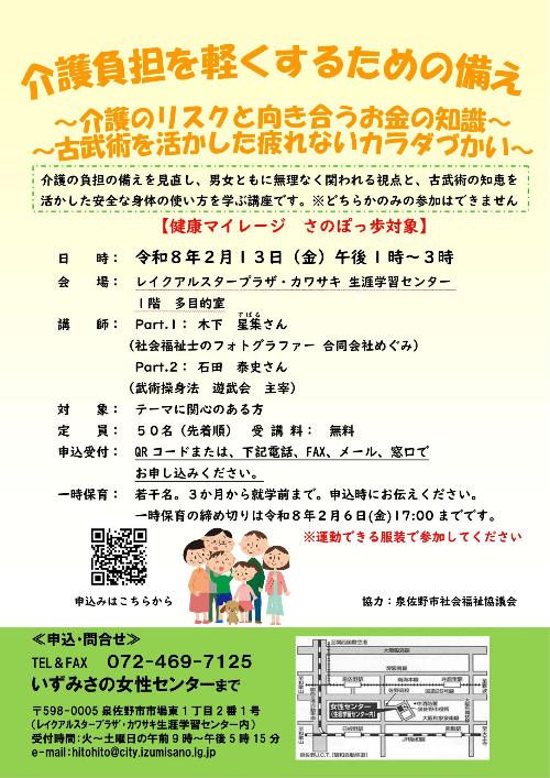 介護の負担の備えを見直し、男女ともに無理なく関われる視点と、古武術の知恵を活かした安全な身体の使い方を学ぶ講座です。
