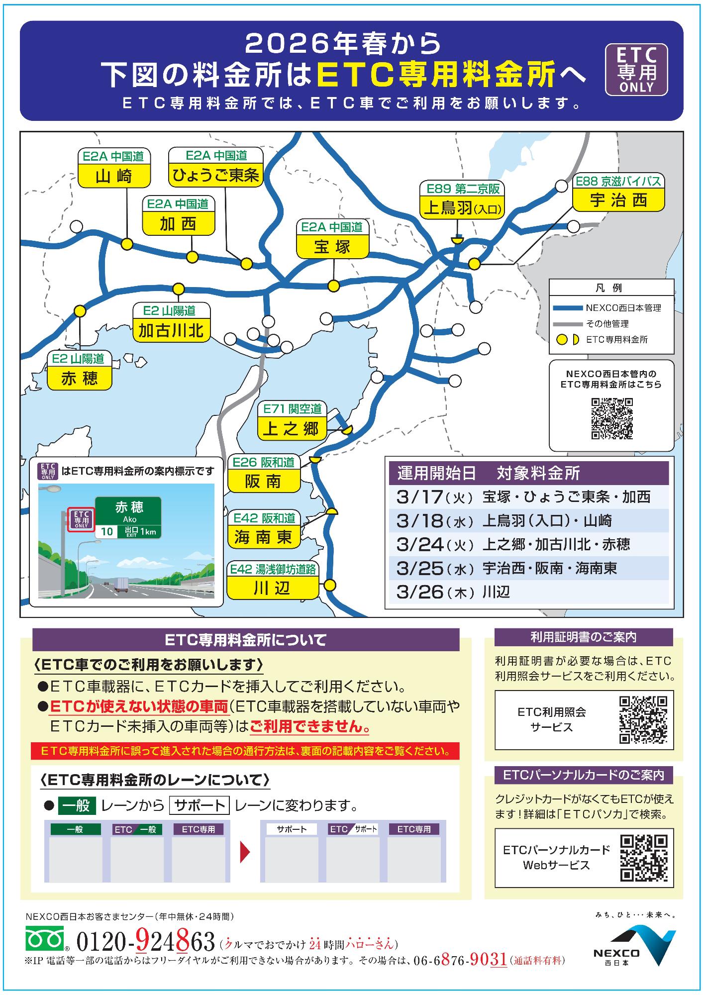 2026年春から一部料金所がETC専用料金所に変わります Tweet 更新日:2026年02月18日 ページID : 17292 2026年3月から下図料金所は、ETC専用料金所に変わります。 現金での利用はできませんのでご注意ください。 この記事に関するお問い合わせ先 道路公園課 交通対策係 <e-mail:koutsu@city.izumisano.lg.jp>電話番号:072-463-1212(内線2232、2236)FAX番号:072-464-9314
