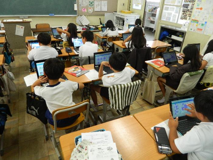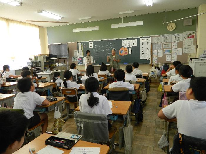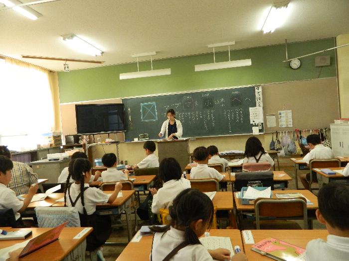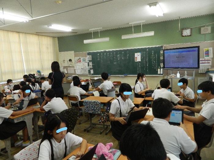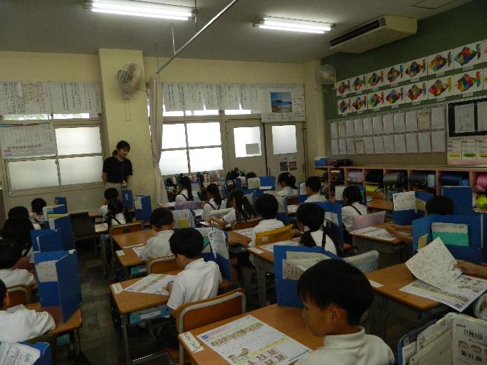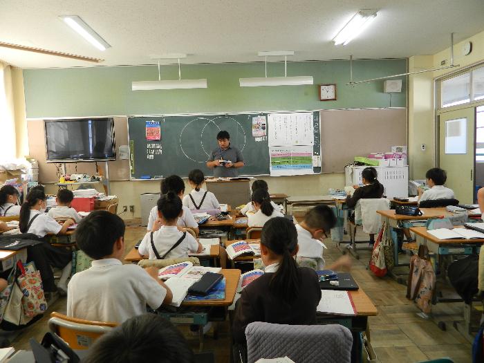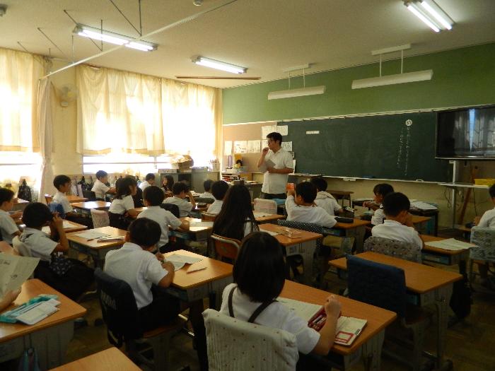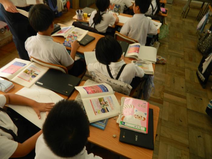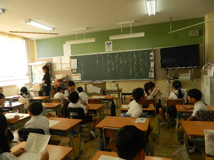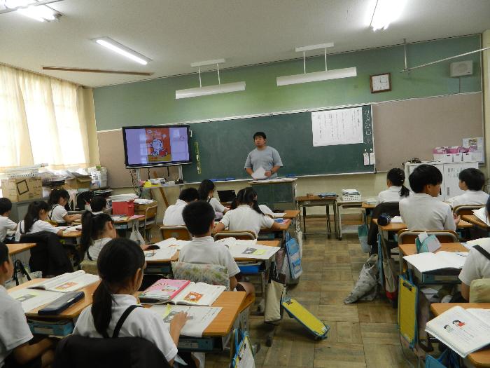 5年生国語の授業。先週教育実習生の研究授業がありました。今日はその続きで「たずねびと」に取り組んでいます。