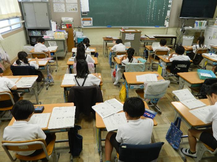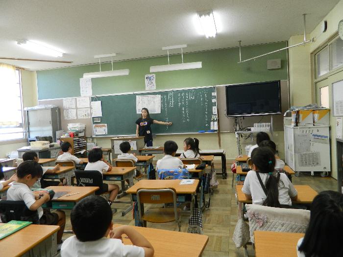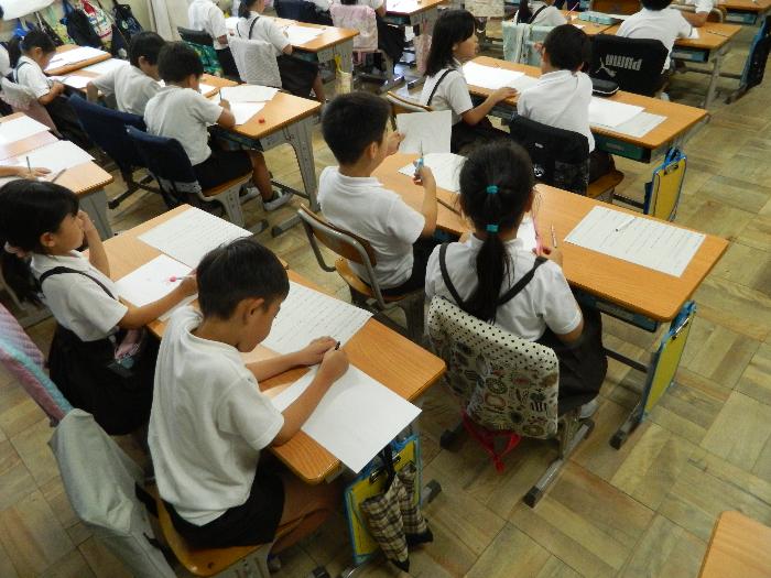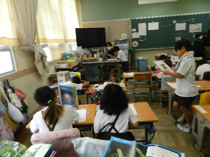 2年生国語の時間。「いろいろな生き物」の単元を勉強しています。夏休みの経験も交えて、意見がたくさん出ていました。