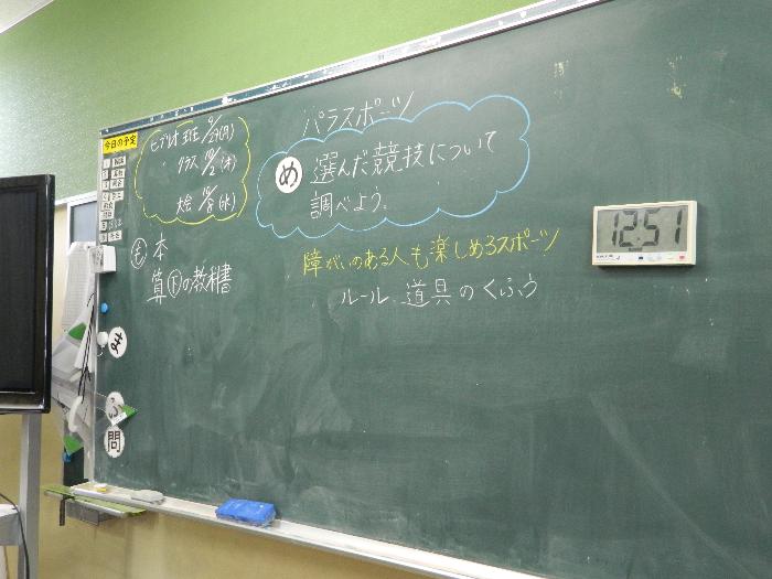 5年生総合の時間。「パラスポーツ」について取り組んでいます。「選んだ競技について調べよう」をめあてに、子どもたちは図書館の本やインターネットからさまざまな情報を集めました。集めた情報を分類整理し、班でドーナッツチャートにまとめていく作業を進めていました。