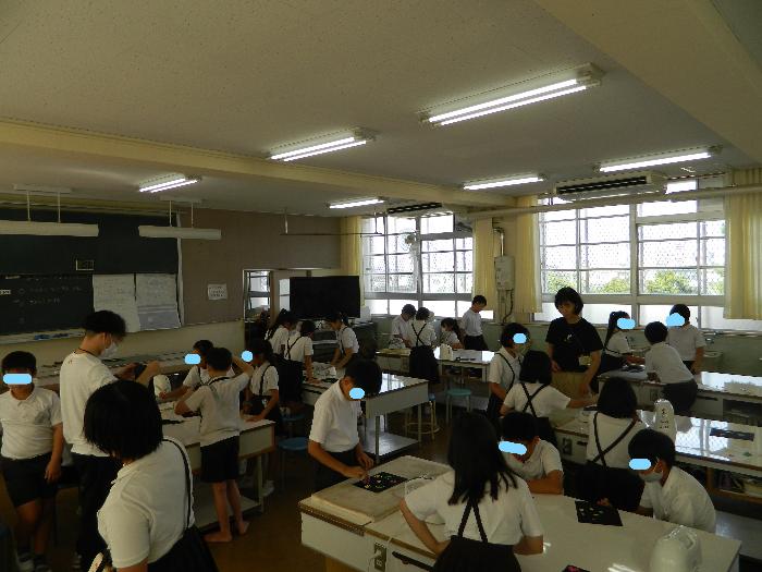 5年生家庭科の授業。アイロンを使って、アップリケを貼り付ける練習をしていました。可愛らしいアップリケがたくさんありました。