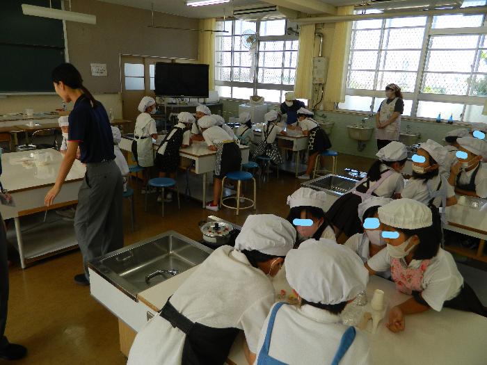 6年生家庭科の授業。調理実習の準備を進めていました。栄養のバランスを工夫した献立を考えていました。