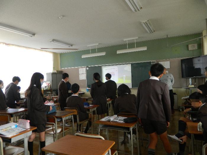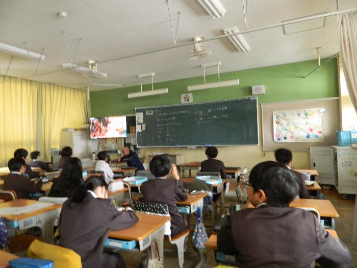 まだまだインフルエンザの影響がみられるので、リモートによる児童朝会でした。代表委員会から来週給食の時に生出演の人にインタビューをする企画のお知らせがありました。生活指導部から今月の目標「手洗い・うがいをしよう」の説明がありました。手洗いの動画が流されて丁寧な手洗いのことがよくわかりました。「ドコモ未来ミュージアム」や書き初め展の表彰もありました。