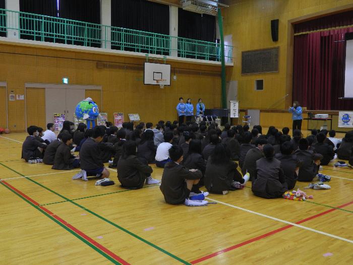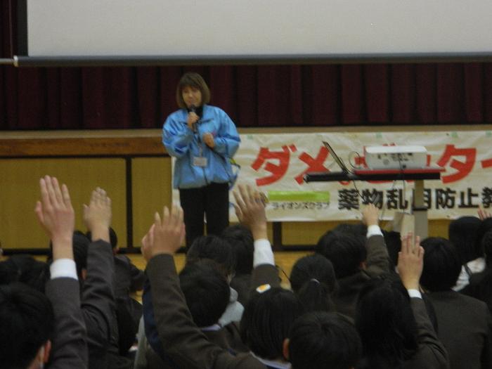 5時間目体育館でライオンズクラブのみなさんから6年生は薬物乱用防止教室を受けていました。大麻などの薬物は絶対ダメ。その怖さをしっかり教えていただきました。着ぐるみの「ダメ!絶対」君も子どもたちにアピールしていました。中から6年生の担任の先生が出てきたときは歓声が上がりました。ひとり一人にリーフレットもいただきました。ありがとうございました。