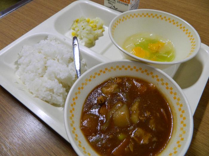 牛乳 ハヤシライス キャベツとコーンのソテー フルーツポンチ