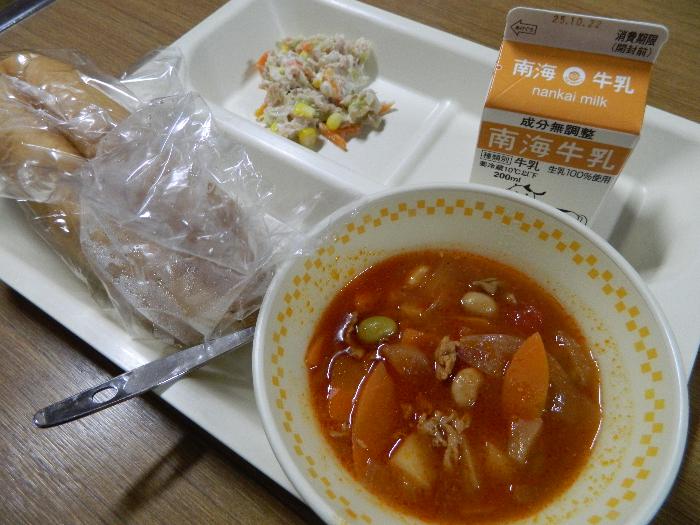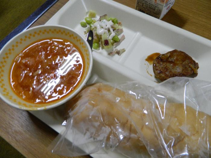 牛乳 ミートソースライス コロッケ 大麦入りベジタブルスープ