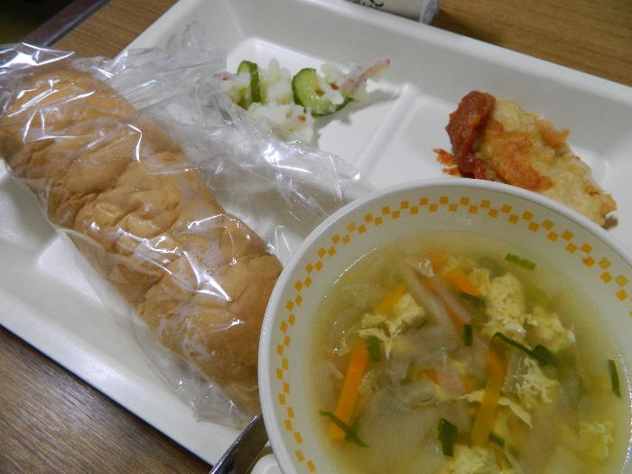 牛乳 パン 白身魚のフリッター じゃがいもさっぱりサラダ 卵スープ