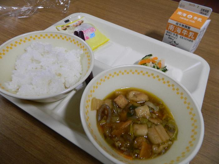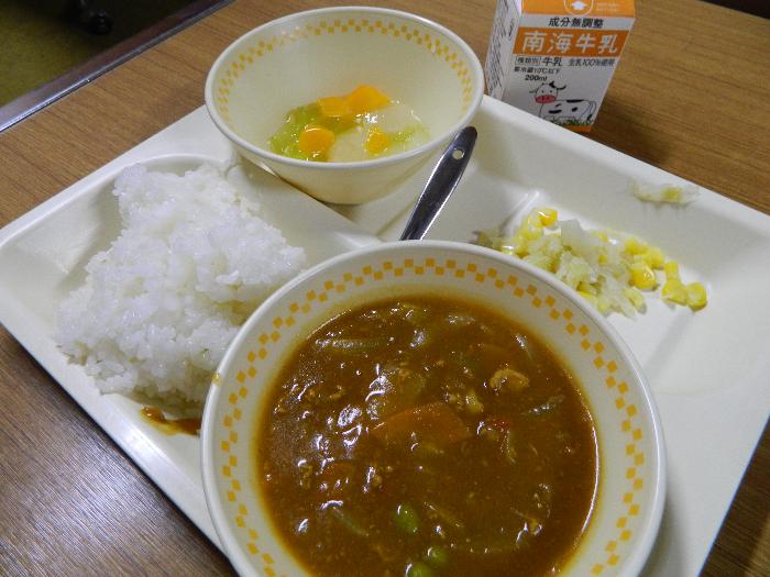 牛乳 カレーライス キャベツとコーンのソテー フルーツポンチ