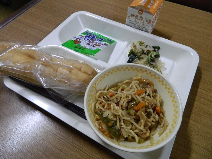 牛乳 焼きそばサンドパン ツナと海藻の和え物 いもけんぴ