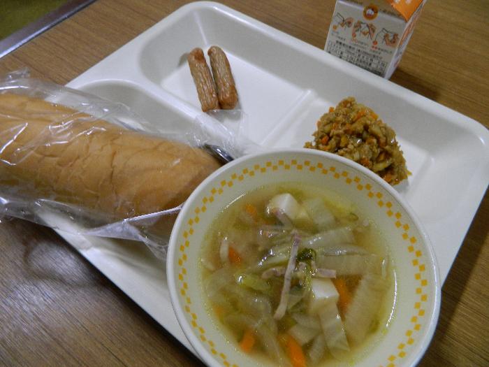 牛乳 ハンバーガー 冬野菜のチキンポトフ キャベツとコーンのソテー
