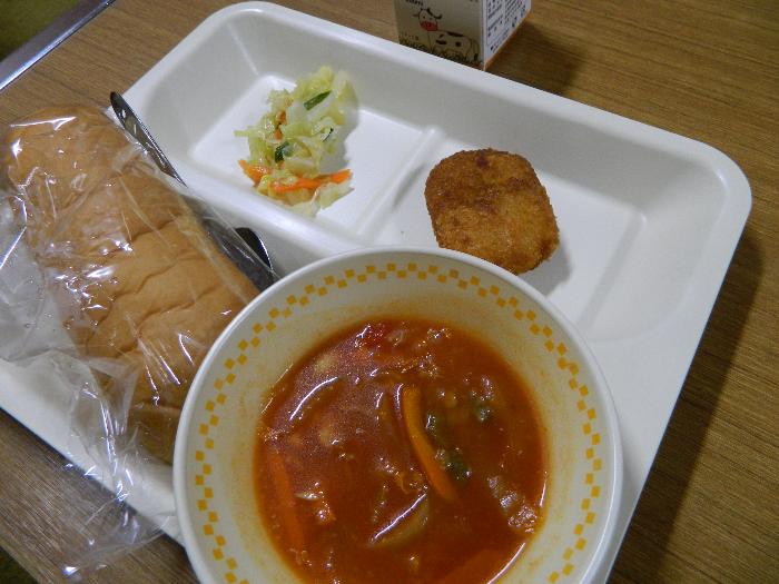 牛乳 パン コロッケ コールスローサラダ ミネストローネ