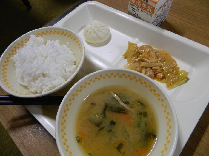 牛乳 ごはん ミニ肉 まん みそわかめスープ 鶏 キムチ炒 め
