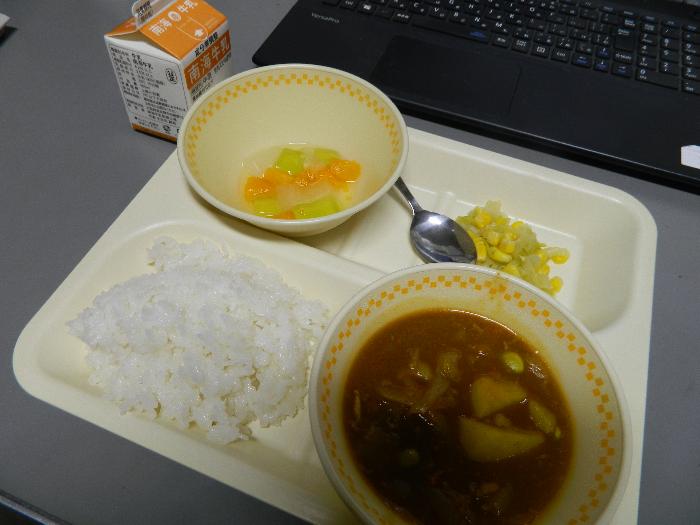 牛乳 カレーライス キャベツとコーンのソテー フルーツポンチ