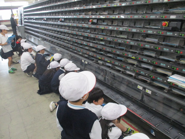 みなさんのお家に届くお手紙が、どのように配達されているのかを、実際に仕事場を見せていただいて勉強しました。普段は絶対に見ることができない場所を見せていただいて、とても勉強になりました。