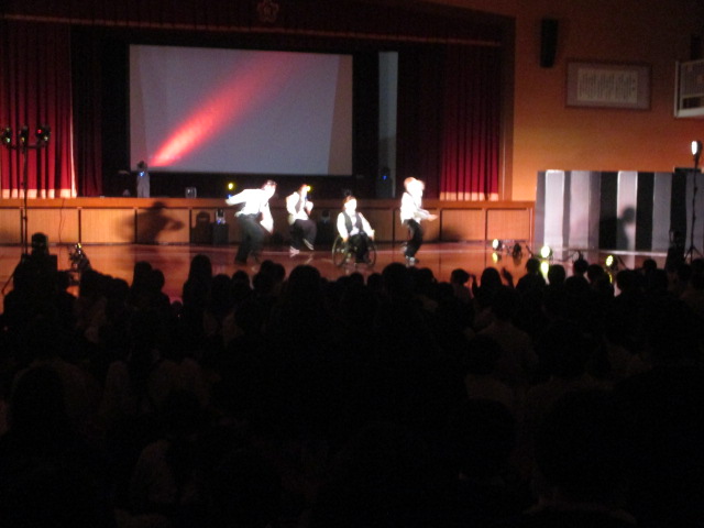 ジェネシスの車いすダンサーの方たちは、いろんな車いすダンスの競技会で活躍されていて、すごいスピードでくるくる回ったりするダンスは、子どもたちから歓声が上がっていました。