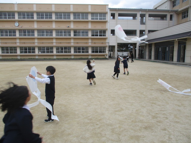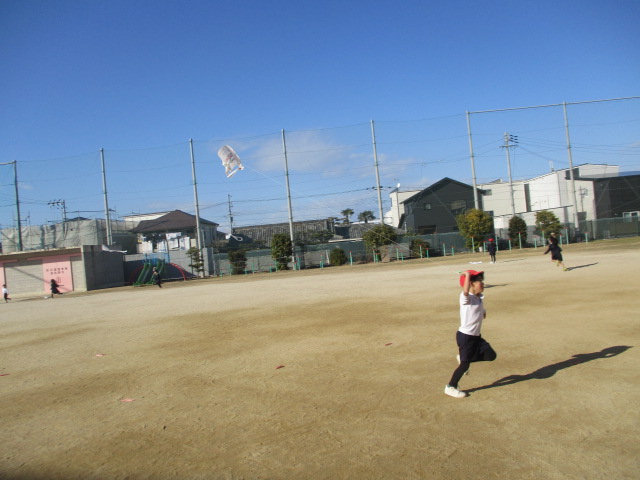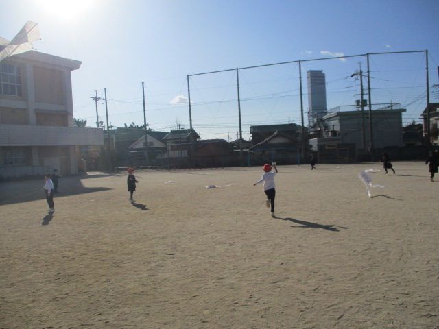 1年生がたこあげをしていました。日本のお正月、という感じがしていいですね。