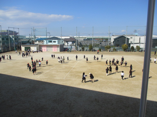 いいお天気だけど寒かったこの日、休み時間に運動場に出ていた子たちは、みんな日なたで遊んでいました。