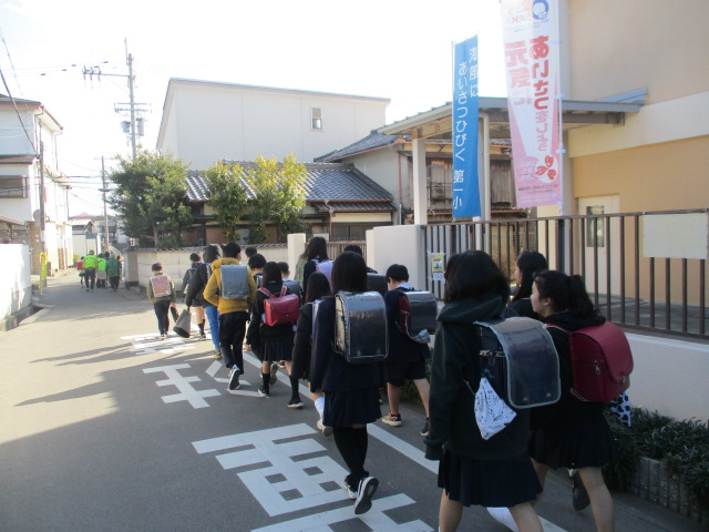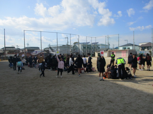 市内一斉パトロール(2月18日) Tweet 更新日:2026年02月18日 今年度3回目、最後の市内一斉パトロールがあり、全校集団下校を実施しました。寒い日でしたが、たくさんの地域の方が来てくださいました。 交通事故や不審者から自分の身を守るため、普段から登下校は気を付けて歩きましょう。 6年生が地区ごとに呼んでくれて、運動場に集合です。 道路の端を集団下校します。 たくさんの地域の方が来てくださいました。 校門の受付員さんも見送ってくれています。