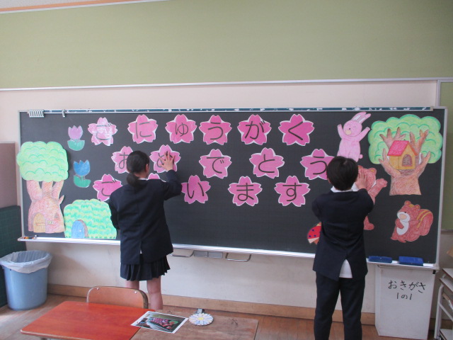 3日に6年生が登校して、入学式の準備をしてくれました。