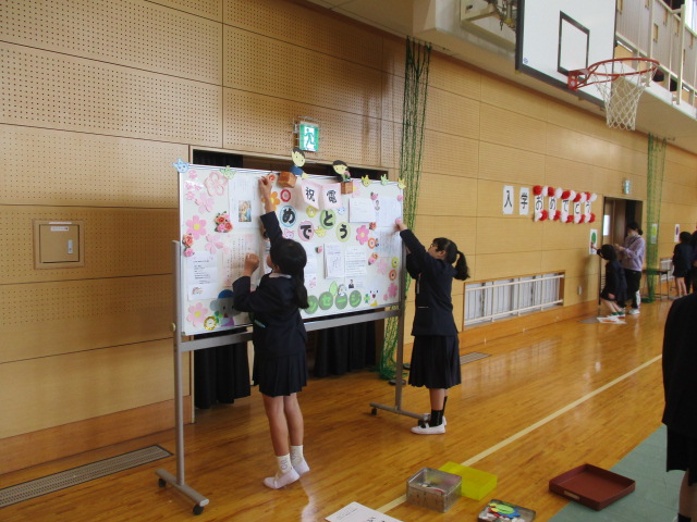 体育館の準備や、周辺のそうじ、1年生の教室の飾りつけなど、大活躍でした。