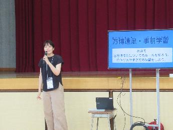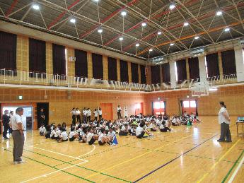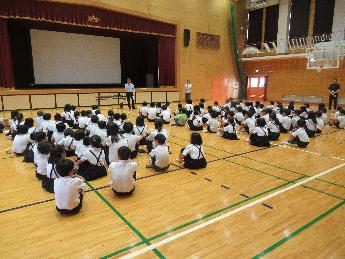 今日30日(土曜日)の2時間目は、体育館に全員が集まって、9月4日(木曜日)にたてわり班で行く「秋の遠足」(大阪・関西万博2025)の全体説明会をしました。
