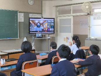委員会会や学年からの連絡や先生からの諸注意など、内容は普段通りです。各クラスの子どもたちもまた、普段の朝礼と同様に、モニター越しの話をしっかり集中して聞くことができていました。