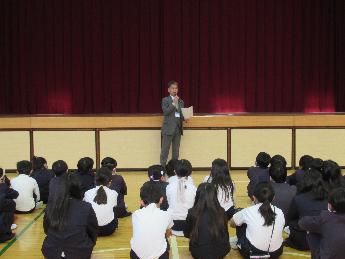 校長先生から、今日12月8日にちなんだお話(太平洋戦争が真珠湾攻撃よりも先にマレー半島で始まったこと)と、誰もが平和な社会をつくるために努力することが大切なこと等のお話がありました。