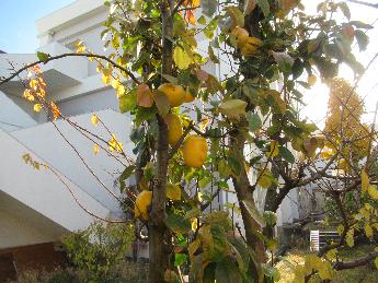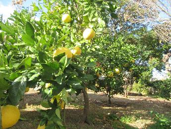 短い秋が終わり、もう師走…本校の果樹園も冬の景色になってきました。宿毛市からいただいたブンタンの実は少しずつ大きくなり、手に持つとずっしりと重さを感じるほどに成長しています。キンカンの実も大きくなり、橙色の実も増えてきています。レモンとカリンも、収穫を待ちわびているかのような立派な実がなっています。カキの実は、今年も地域の方や鳥たちのお腹を十分に満たしてくれたようです。