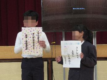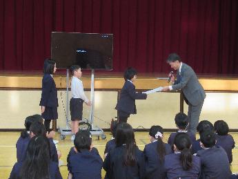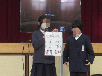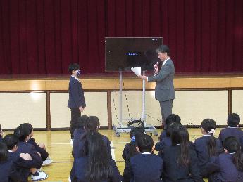 校長先生から節分にちなんて「心の鬼を追い出そう」というお話があった後、児童会等から2月の目標発表、そして各種表彰式がありました。