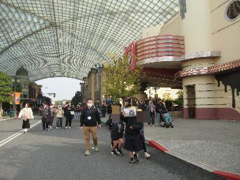 行先のUSJは、今回が初めてという子どもたちもいて、みんな移動のバスの中からとても楽しそうでした。パーク内は班行動ですので、「クラス全員が楽しかった」と思えるように、自分たちで考えて行動することが目標でした。