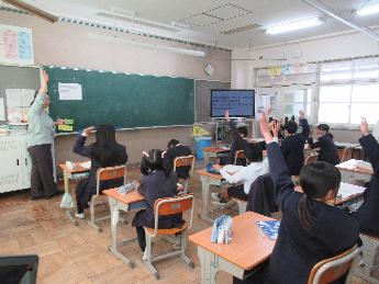 今日の4時間目は、4年生による校内研究授業でした。これは、学校全体の授業力向上を目的に、年間を通して各学年が1回ずつ校内で授業を公開し、参観者による助言等をおこなうものです。