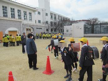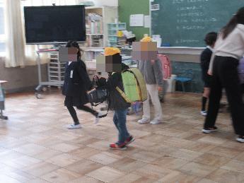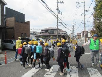 見守り隊の方々と一緒に下校します