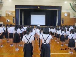全校児童を体育館に集め、始業式を行いました。校長先生からは「夏休み中は地震に関する臨時情報が発令されていました。9月には大阪府内の880万人訓練があるので、しっかりと取り組みましょう。」「2学期は長く、運動会をはじめ多くの行事があります。体調に気を付けて頑張ってください」というお話がありました。