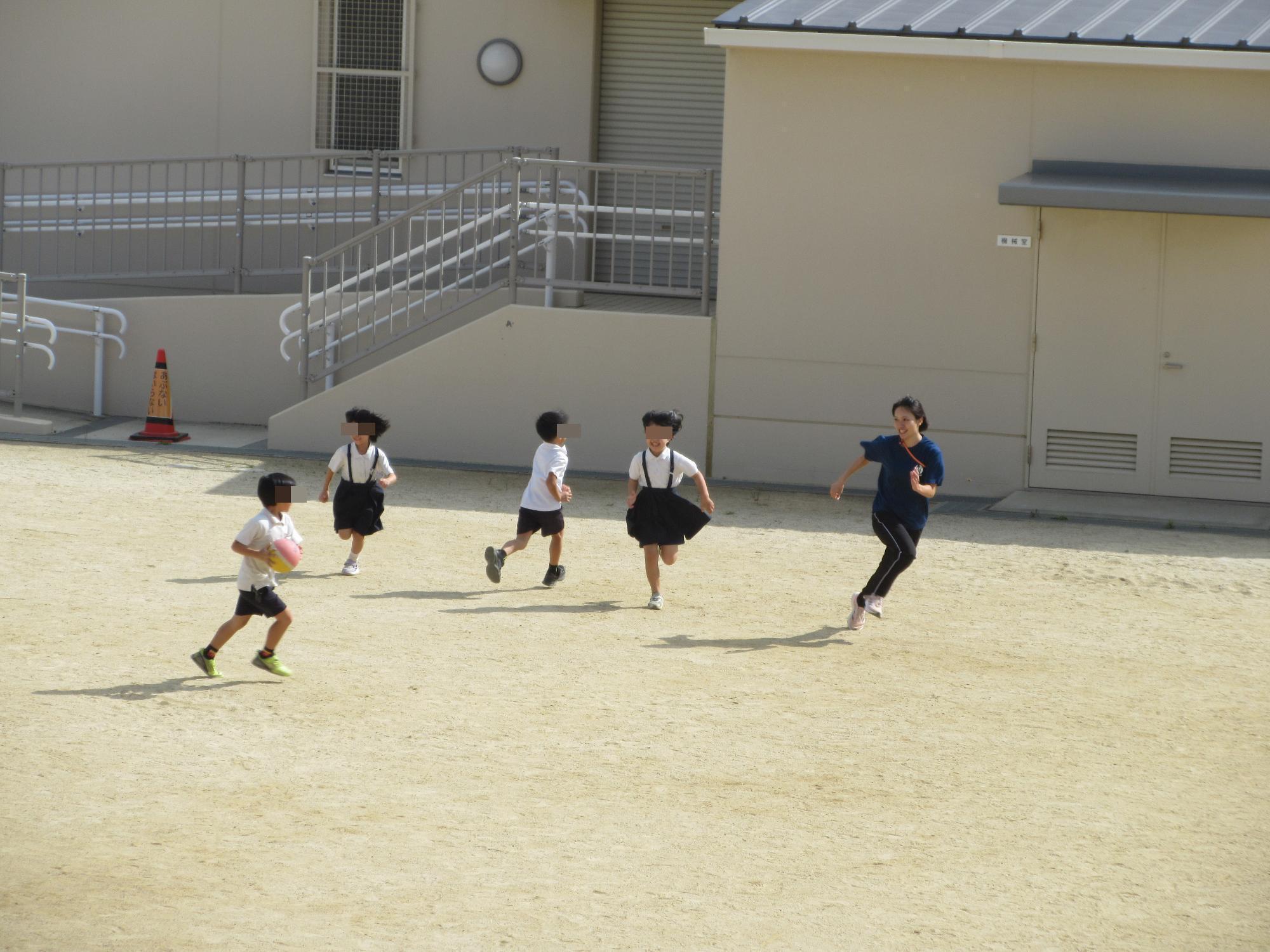 5時間目に上之郷コニュニティセンターで隔週の土曜日に活動されている「よさこいチーム紀州龍神」の方々に来校いただき、運動会で披露する団体演技を指導していただきました。