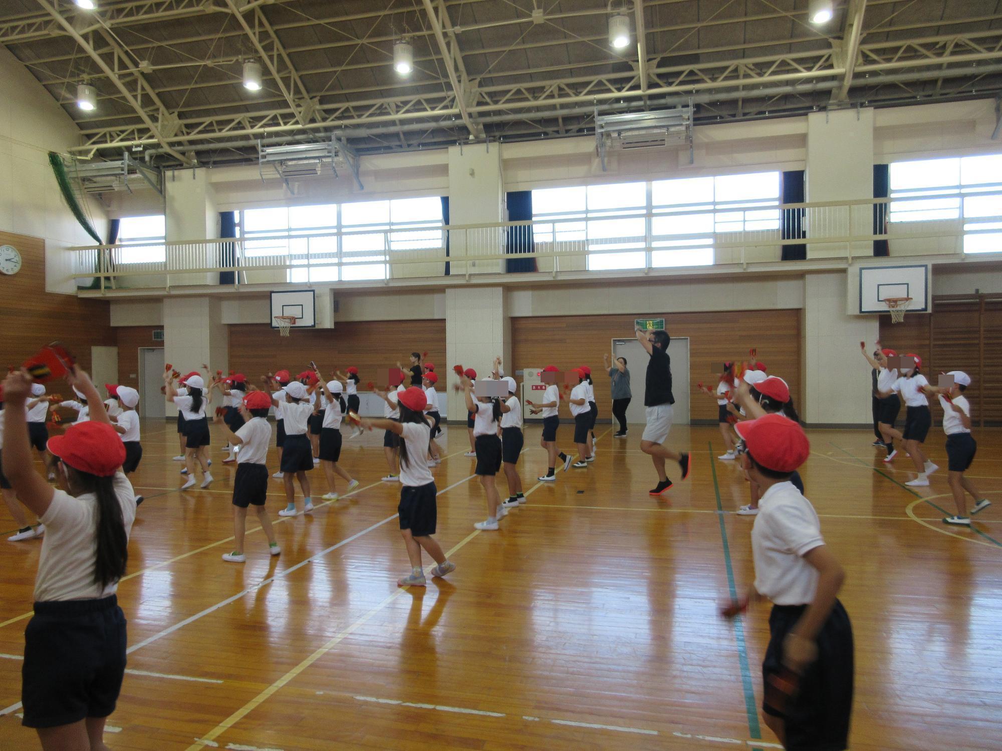 最初に見本の踊りを披露してくださいました。その後、子どもたちに丁寧に指導していただきました。あと2回指導していただく予定となっています。運動会での3・4年生の団体演技を楽しみにしてくださいね。