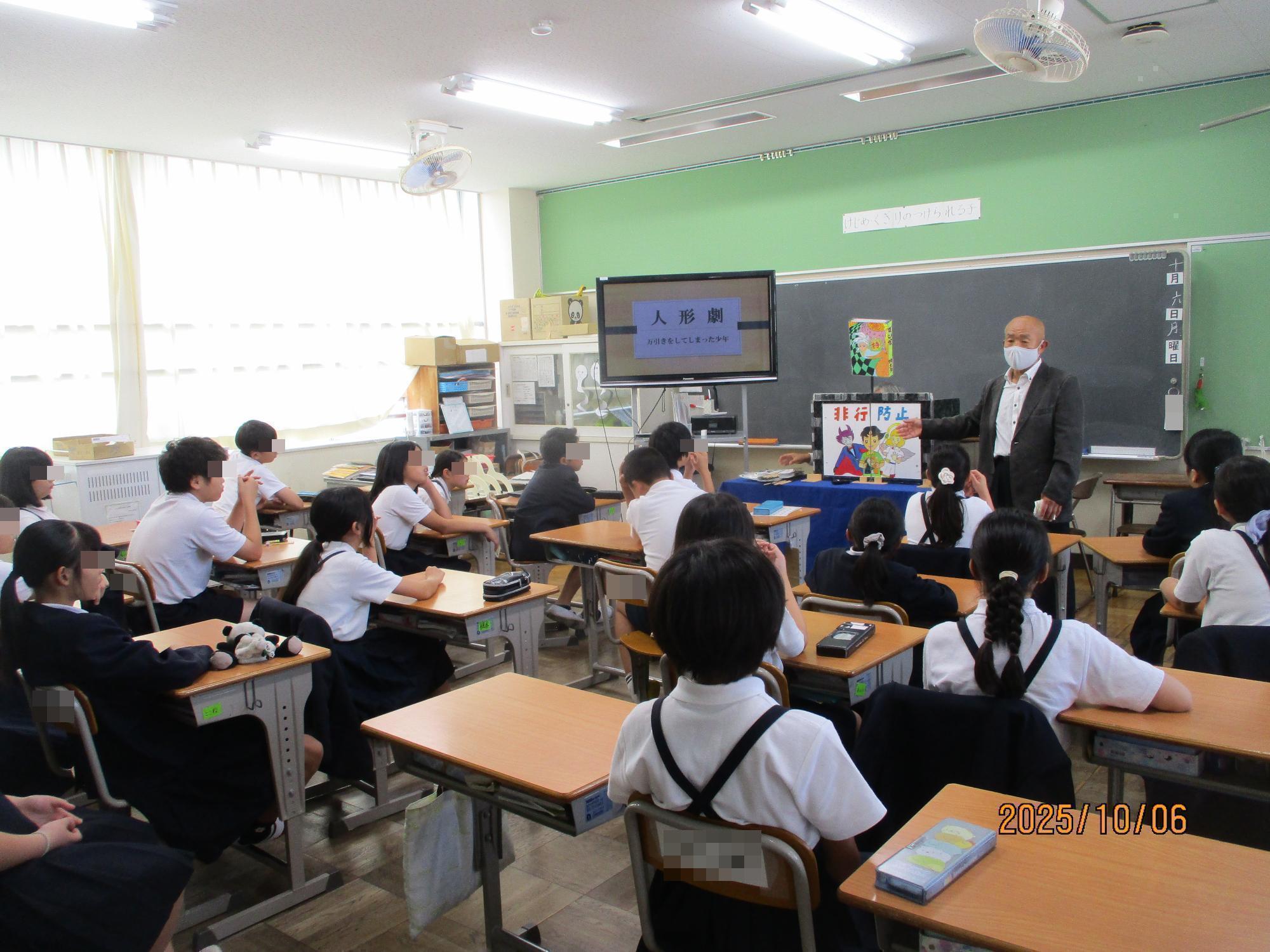日頃の生活で正しい判断をするために大切なことや、ルールを守る大切さを学びました。スライドやユーモアを交えた授業で、子どもたちは楽しみながらも、真剣に耳を傾けていました。また、人形劇を通じて窃盗などの軽犯罪をしてはいけないことを改めて確認しました。