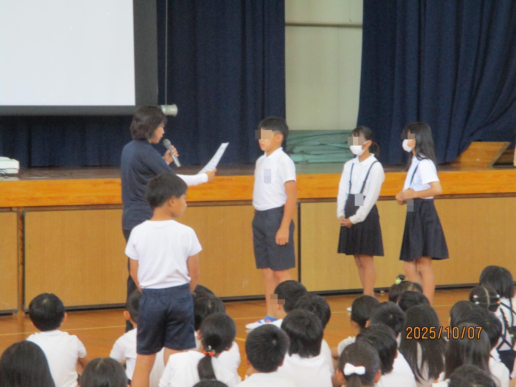 表彰では、6年生さんが代表して賞状を受け取りました。