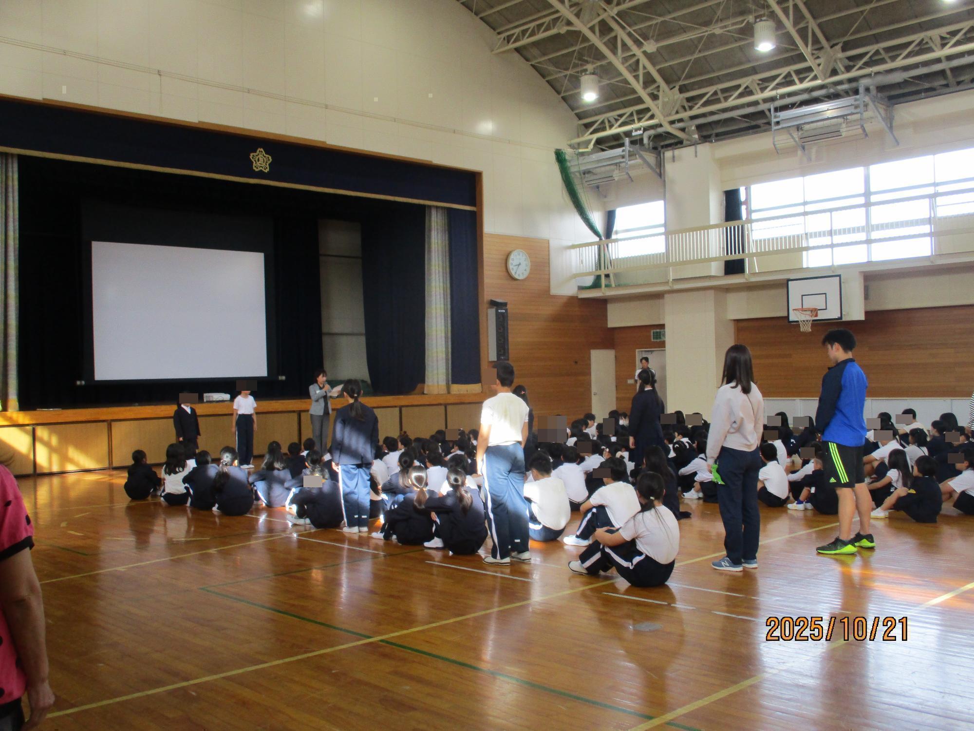 10月21日に児童朝会を行い、校内で実施している短歌チャレンジの表彰を行いました。