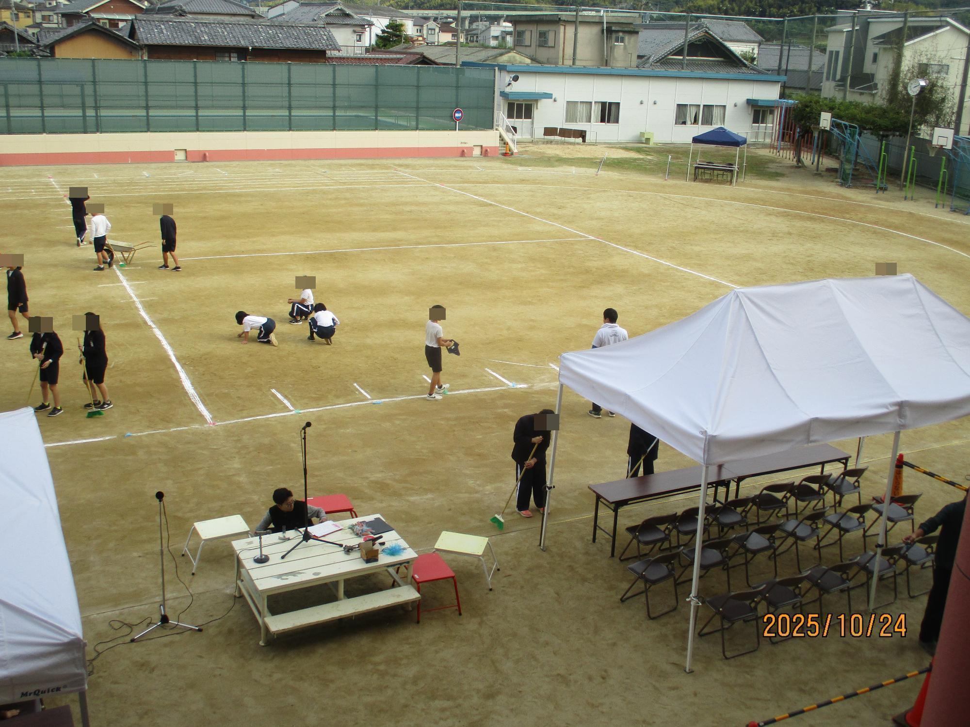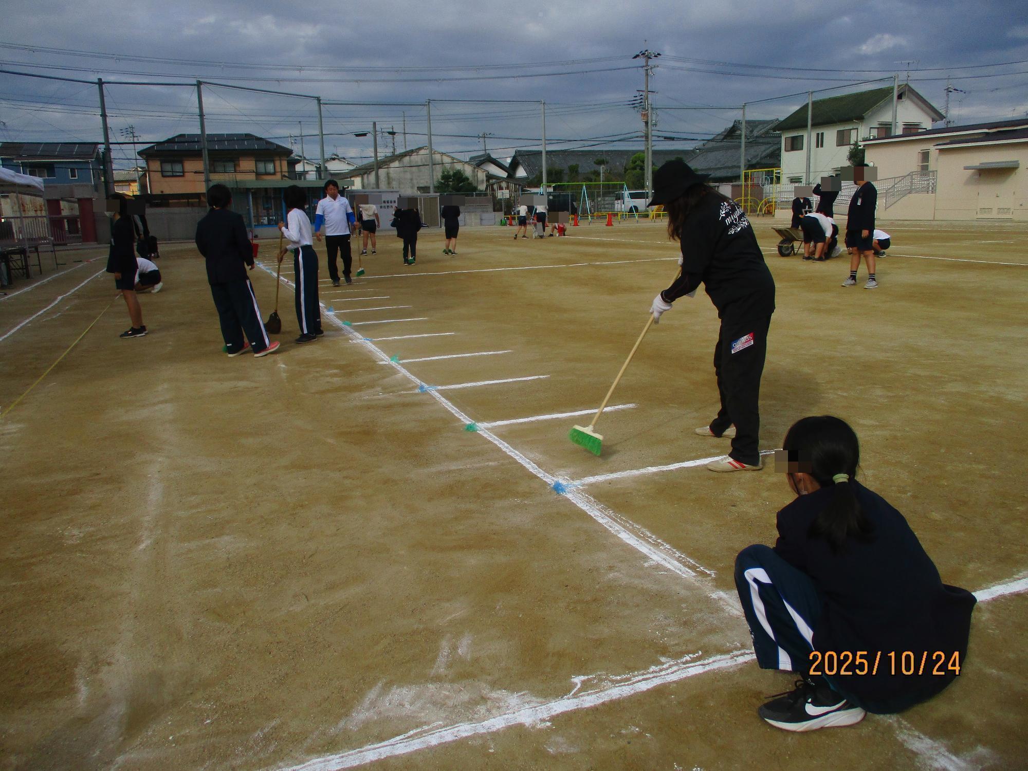 委員会ごとに役割を手分けして机やいすの設置をしたり、白線を引いたりしてくれました。委員会の役割が終わった後、子どもたちはグラウンドの石を取り、整備をしてくれました。日曜日は晴れますように🌤