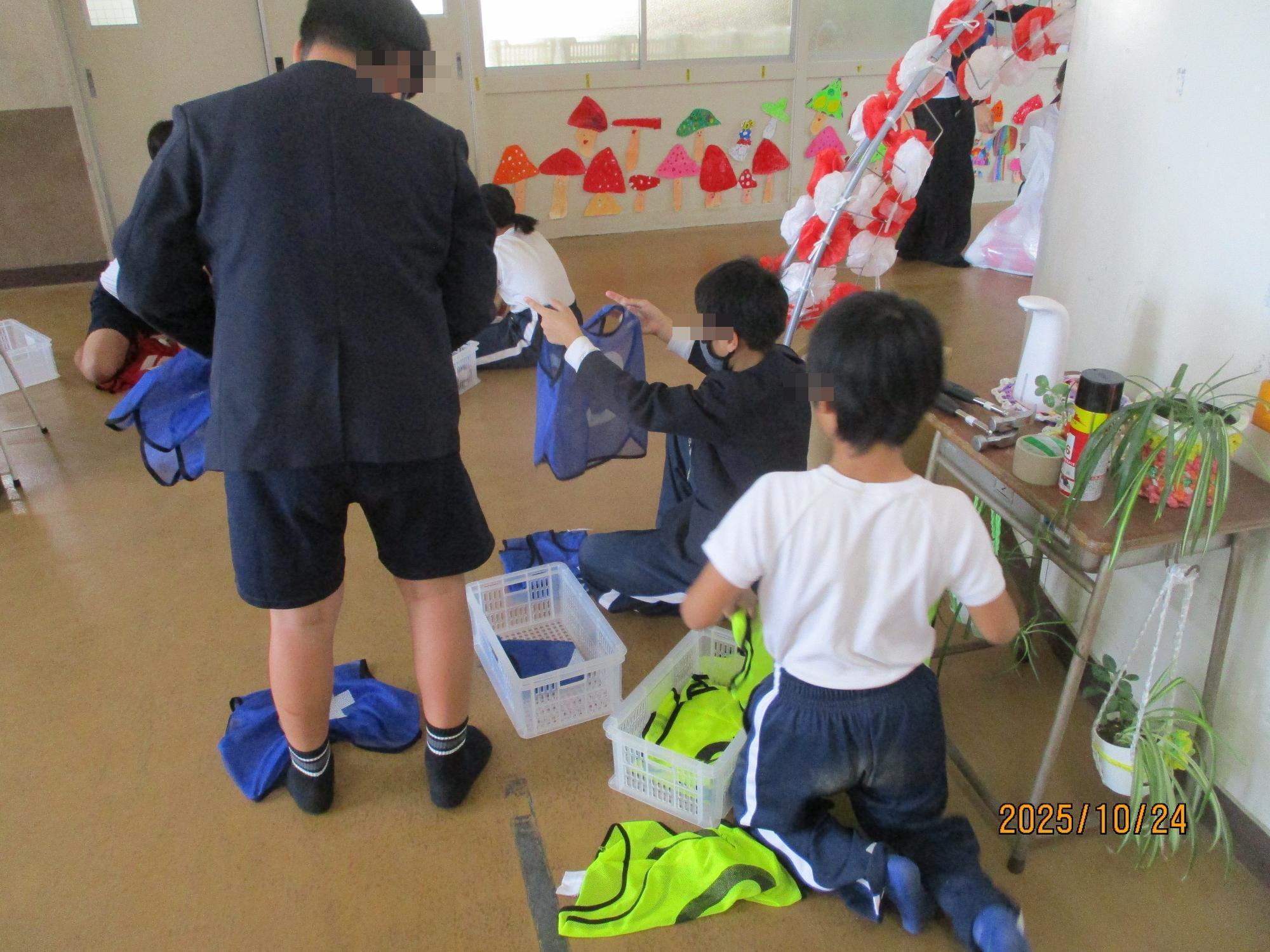 10月24日の午後、5・6年生が明後日に迫った運動会に向けて運動会準備を行いました。