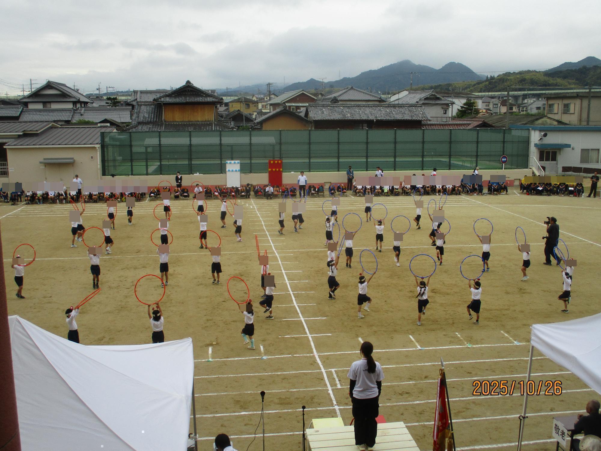 朝の時点では降ることなく、実施することが出来ました。途中で雨が降る可能性があったため、雨の日プログラムに変更して実施しました。当日の急なプログラムの変更にもかかわらず、子どもたちは精一杯の演技や競技をお家の方や地域の方に披露することができました。