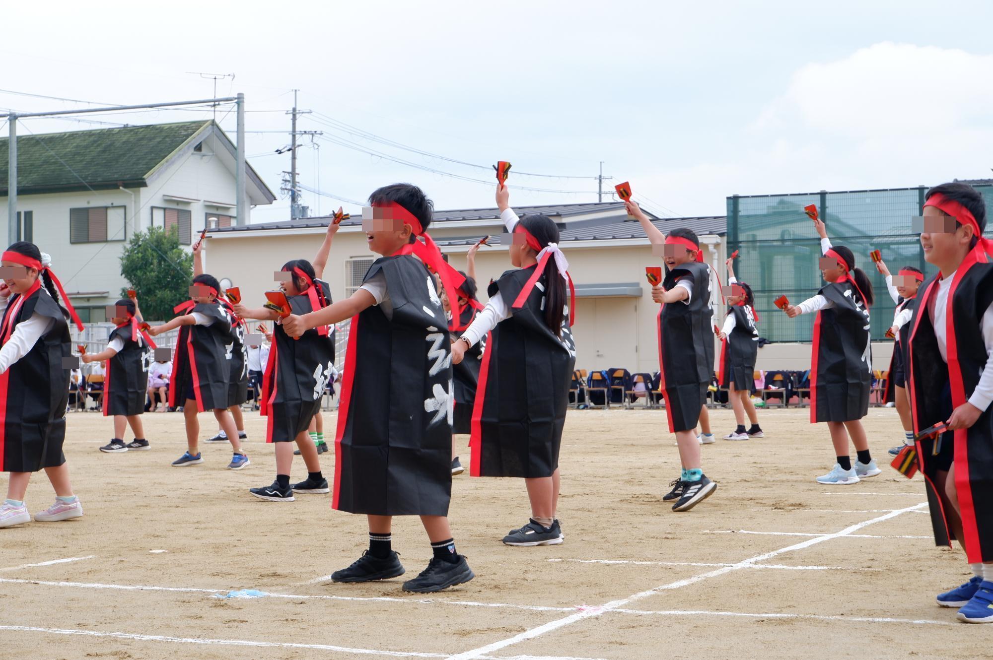 3・4年生のよさこいソーランは鳴子の音が響き渡りました