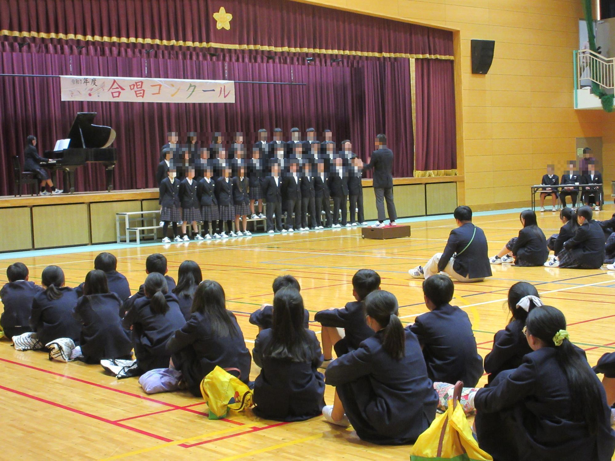 6年生が、5・6時間目に日根野中学校の合唱コンクールに参加し、3年生の合唱を聞かせていただきました。各クラス課題曲「旅立ちの日に」と自由曲を2曲ずつ歌い、すばらしいハーモニーでした。来年の春には中学校に入学します。中学校入学への期待が高まりましたか。